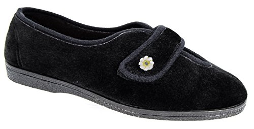 Best Seller! Ladies Womens Mirak Black Velcro Wide Fit Comfortable Slippers Sizes 3 4 5 6 7 8 9 (6) Review