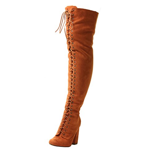 Best Seller! New Ladies Womens Over The Knee Sexy Black Tan Lace Up High Block Heels Boots Review