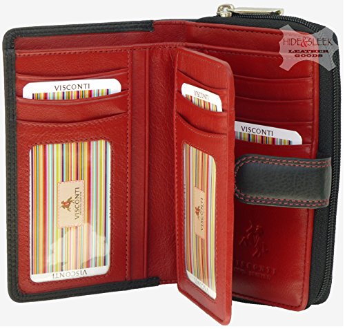 Best Seller! VISCONTI Beautiful Quality Soft Leather Purse with Swing Section and 16 Credit Card Slots (Black/Red) Review