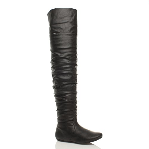 Ajvani offer Womens ladies flat over the knee thigh zip fold cuff pirate ruched high boots size, Black Matts, 6 UK. This awesome product currently limited units, you can buy it now for £23.90, You save -